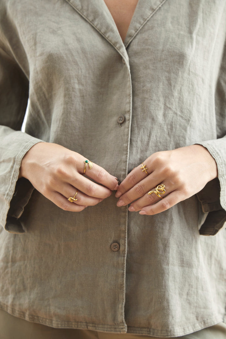 Se enrosca con elegancia alrededor del dedo, como un símbolo de protección silenciosa.