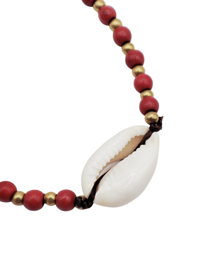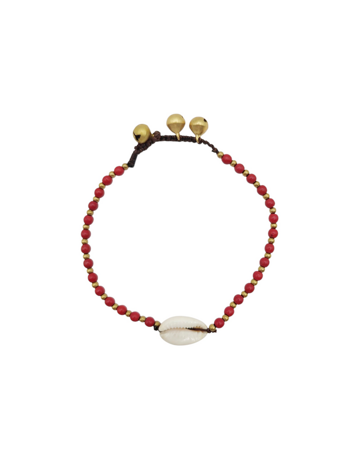Esta tobillera combina pequeñas cuentas de howlita roja, piedra que se asocia con la vitalidad, el coraje y la energía de quien persigue sus sueños sin miedo.