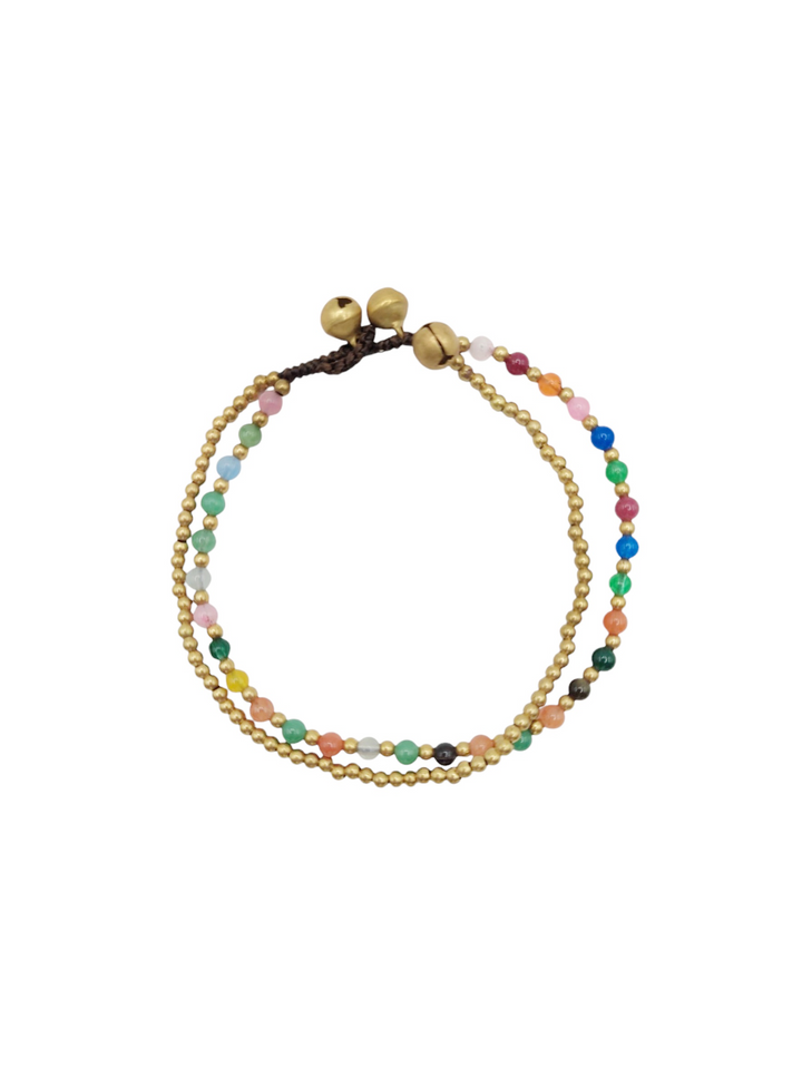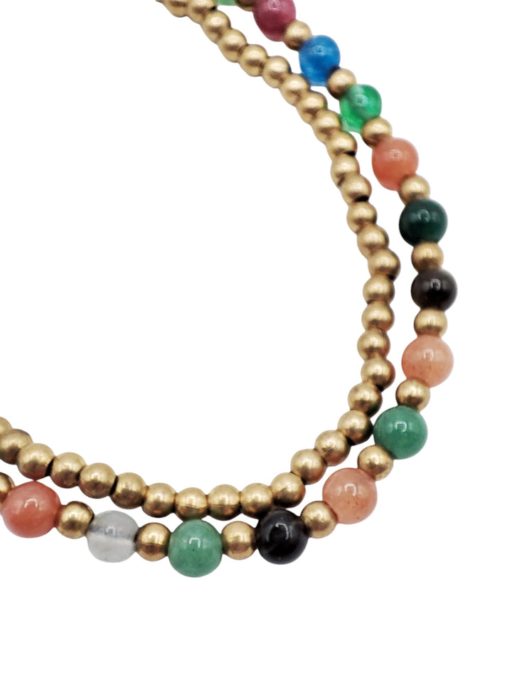 La Tai Samui combina bolitas de ágata en distintos colores, como pequeñas chispas de energía que te acompañan en cada paso. A su lado, el latón añade un brillo suave y cálido que la hace aún más especial.